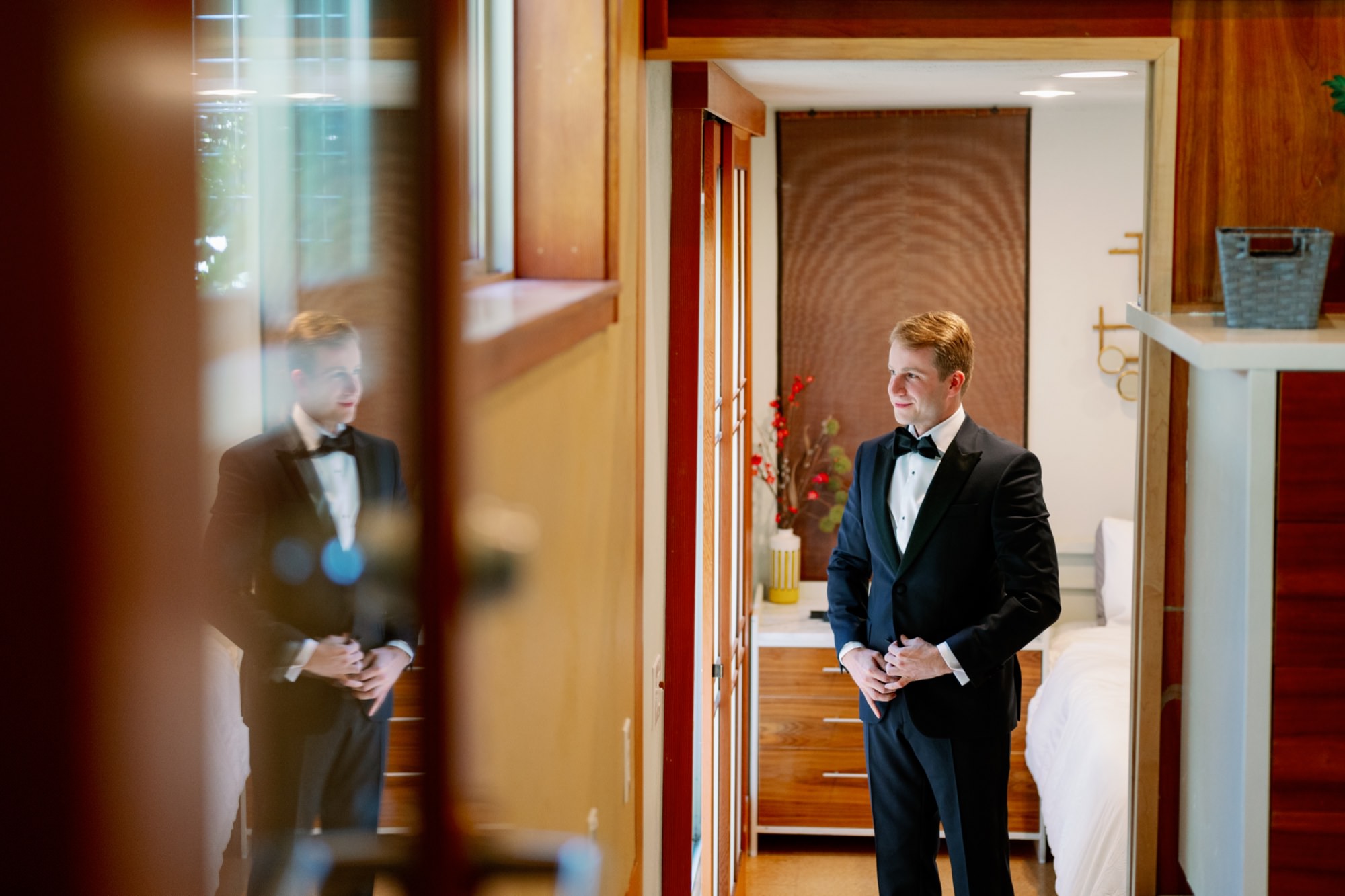First look in the courtyard – The filtered light and soft greenery created a calm, intimate moment in McVay Courtyard before the day picked up.