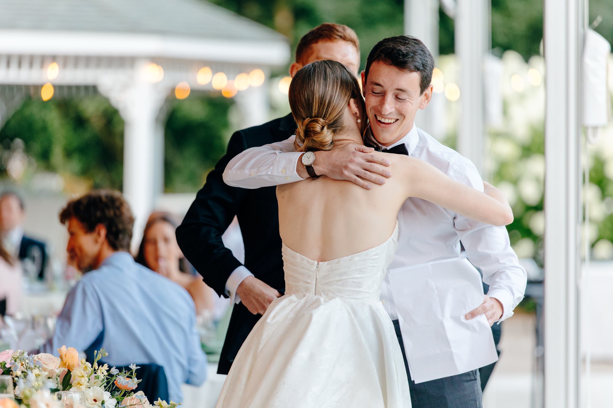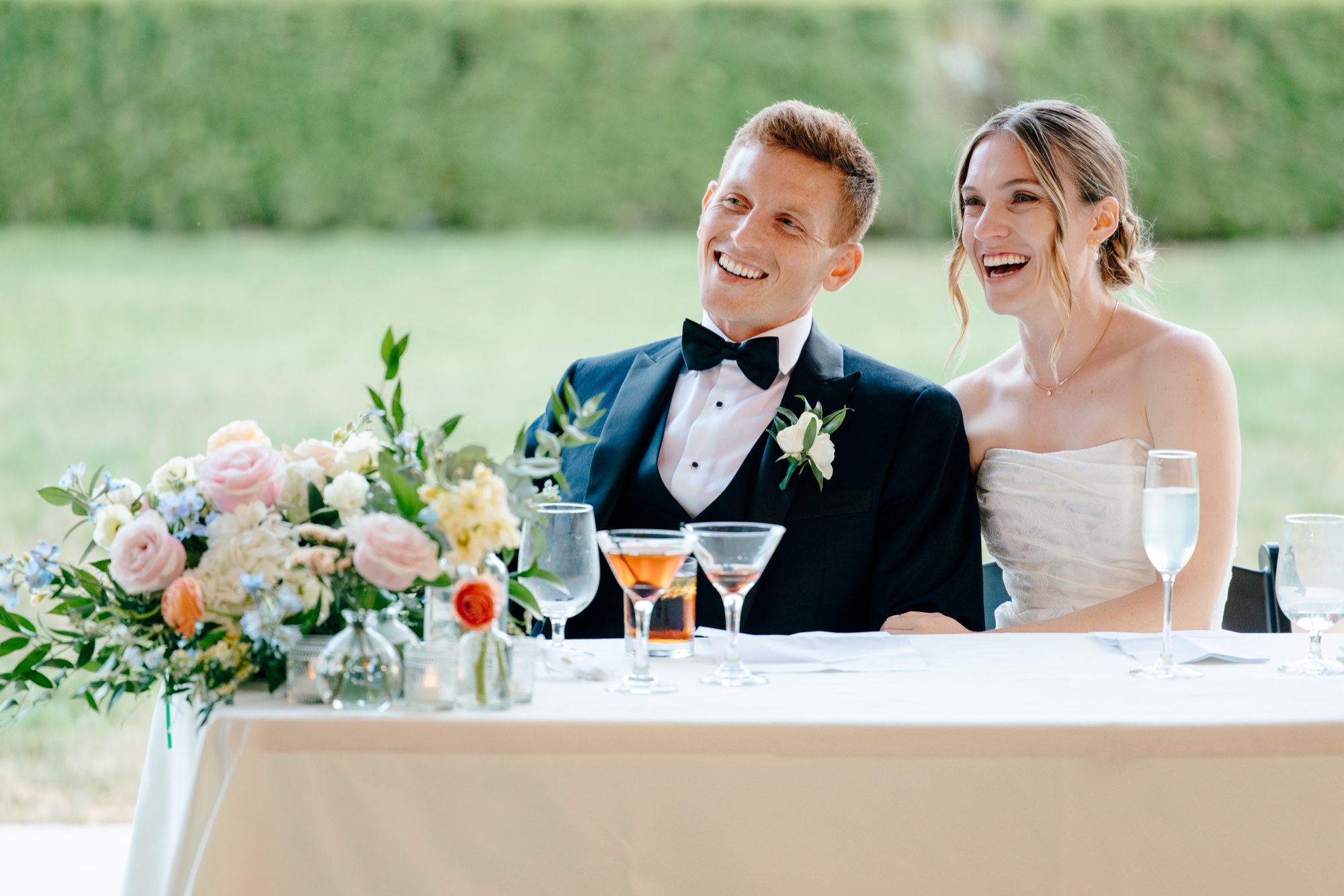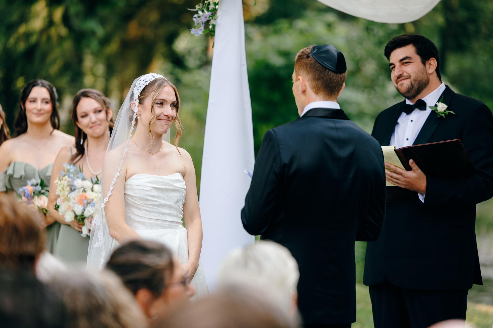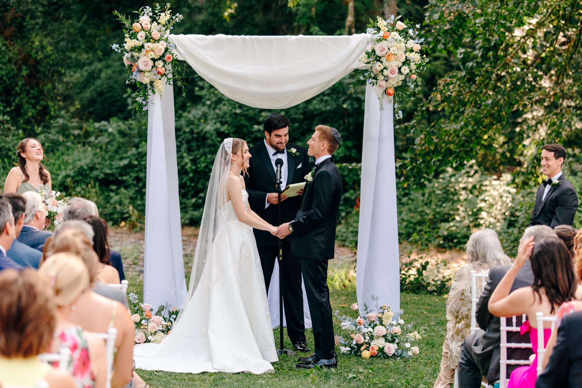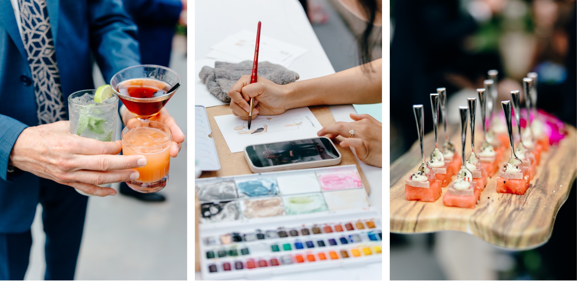 They also put a lot of thought into creating a memorable experience for their guests. A personalized crossword, lawn games, and a live watercolor painter offered ways for everyone to engage and enjoy the summer celebration. From meaningful vows to relaxed outdoor moments, the day was filled with warmth and joy.