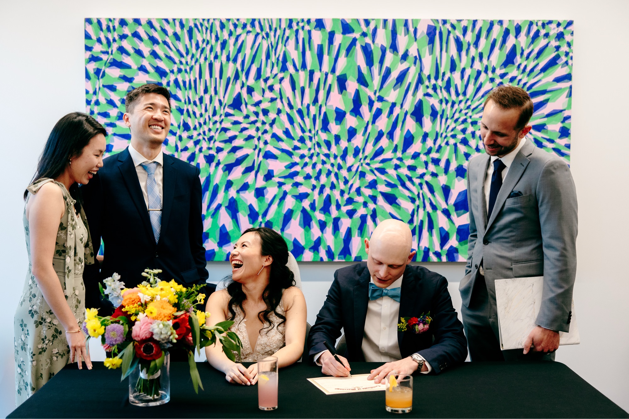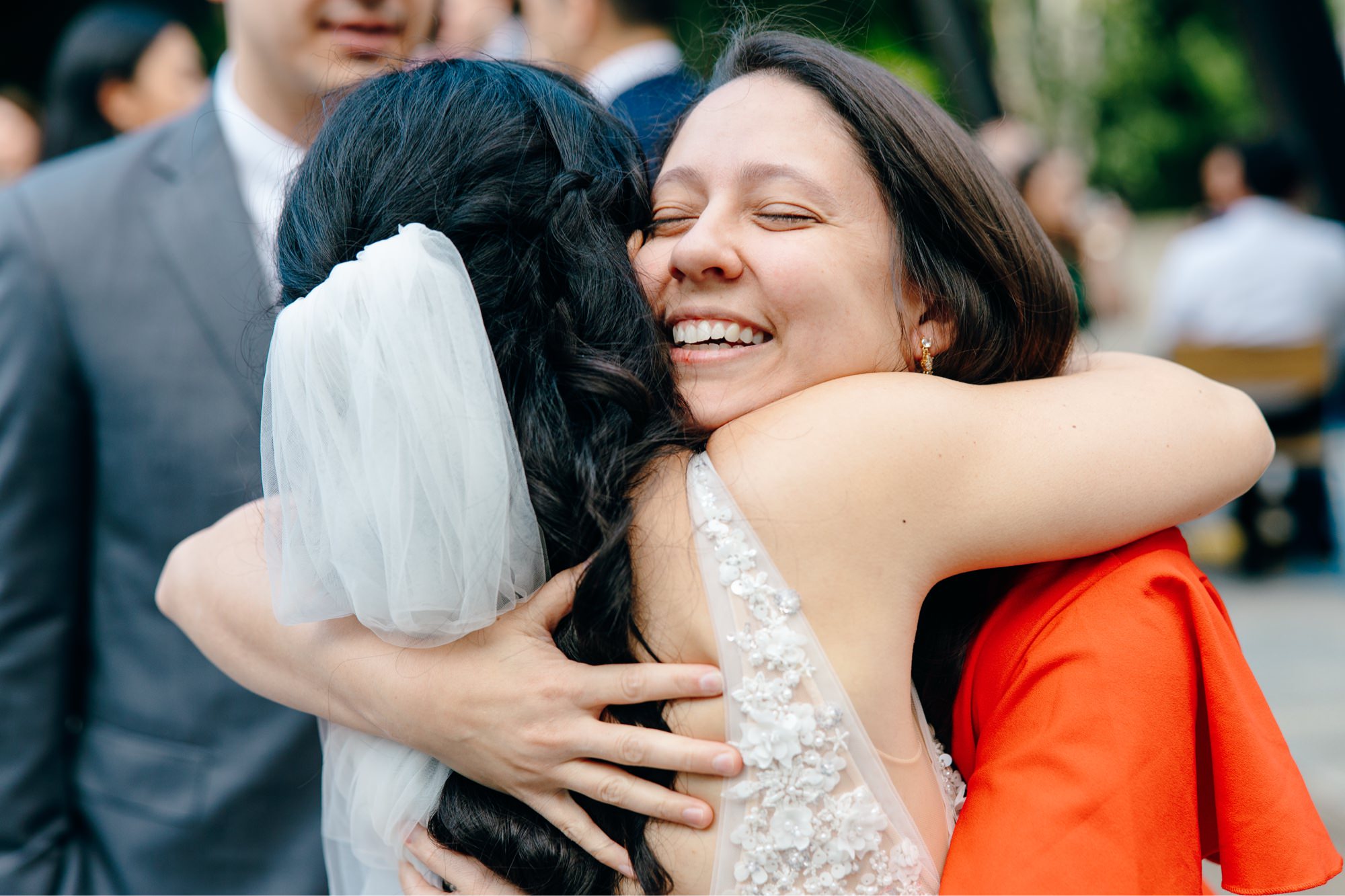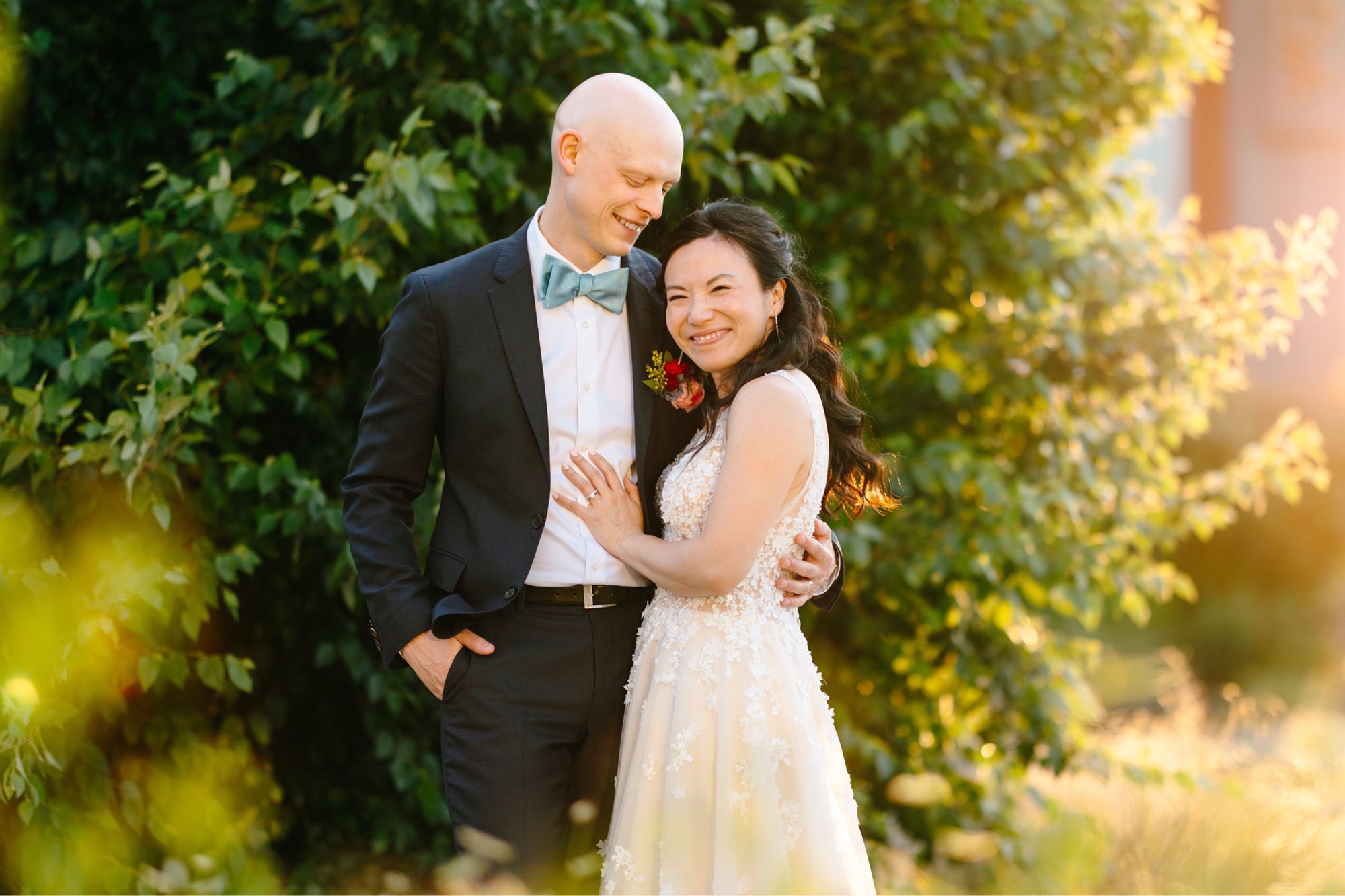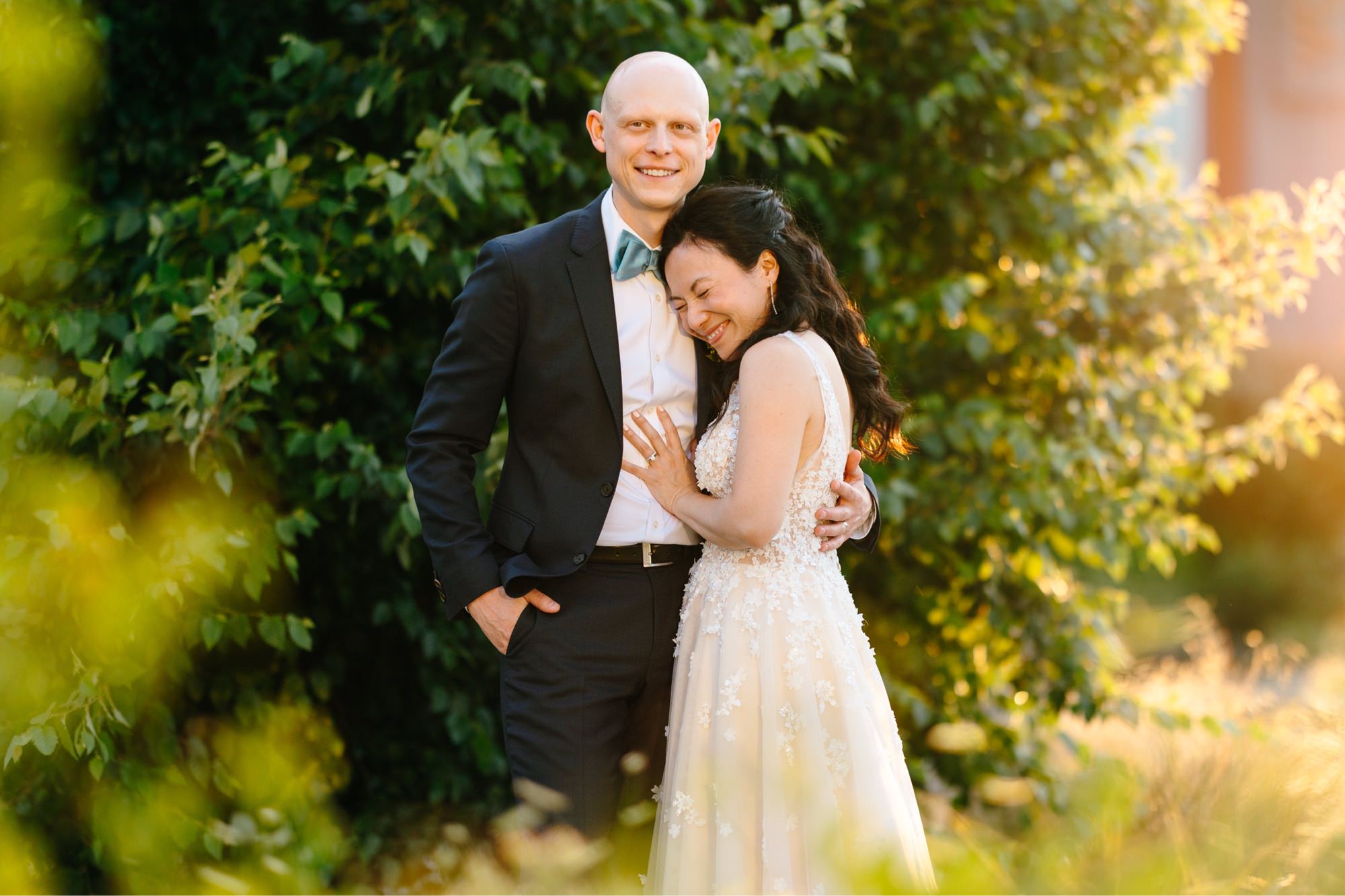 They chose to do their first look at The Nest in downtown Seattle, an intimate spot that perfectly captured the excitement and anticipation before heading to the museum for portraits. Their wedding day also happened to fall on the hottest day of the year, making the museum’s air-conditioned spaces and the shaded East Garden an enormous relief for both the couple and their guests.