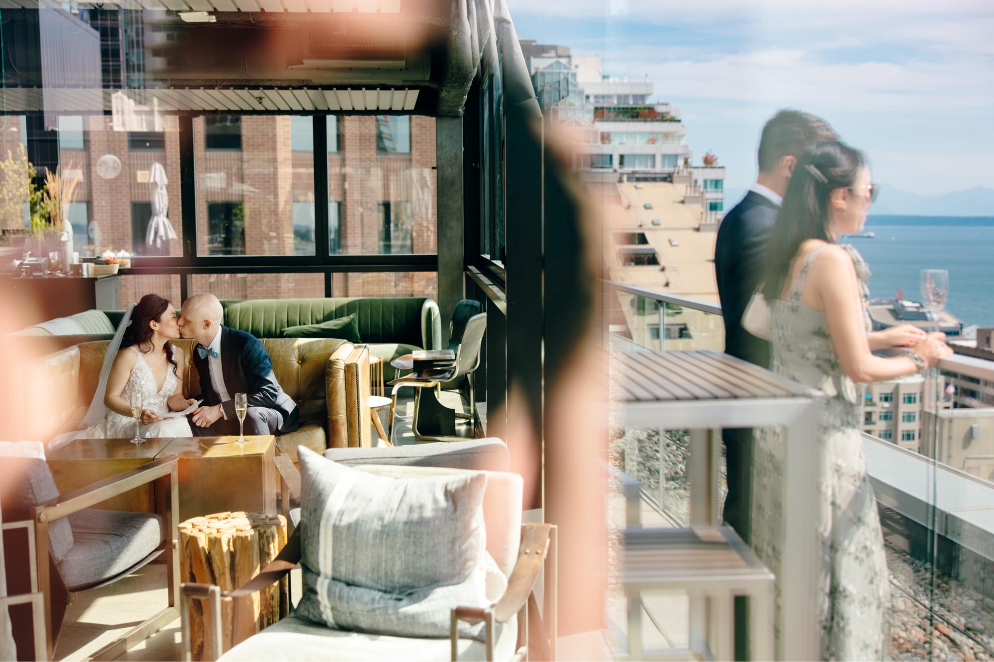 Imagine your guests laughing and sipping champagne under bistro lights with Seattle skies overhead. This terrace blends architecture with waterfront charm. It is perfect for cocktail hours or outdoor receptions.